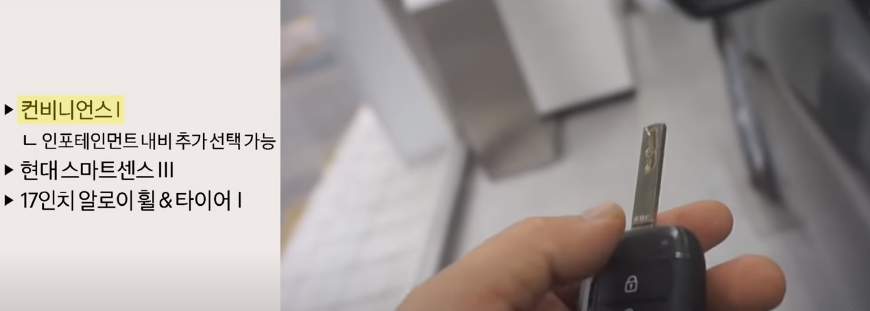 기본적으로 풀오토 에어컨이 없는 수동 에어컨과 구형 네비게이션 무엇보다도 자동차키로 문을 열어야 되는 불편함이 있습니다. 요즘 같은 시대에 아날로그도 정도가 있다고 생각하기에 최소 모던 트림부터 보시는걸 추천드립니다. 중고차라서 가격차이도 크게 나지 않습니다.