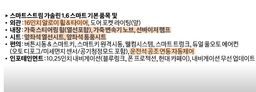 기본적으로 스마트 깡통트림에는 열선,통풍,공조기등에서 불편하니 최소 모던트림으로 구매하시길 권장드립니다.