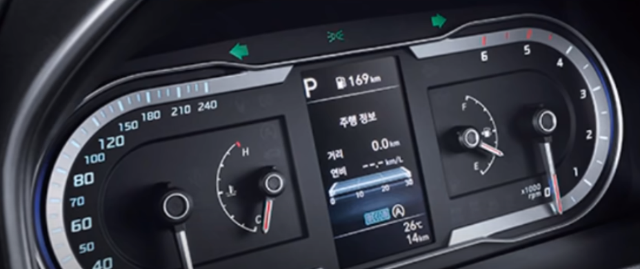 모던 트림 선택시 내장 디자인에 대해서 알아보겠습니다. 먼저 4.2인치 컬러 LCD 클러스터가 들어가는데 계기판과 속도계 RPM은 아날로그 방식이고, 중간에는 4.2인치 LCD 정보화면이 위치하고 있습니다. 다른 건 몰라도 모던 트림 계기판은 너무 옛날차 느낌이 나는 거 같습니다.