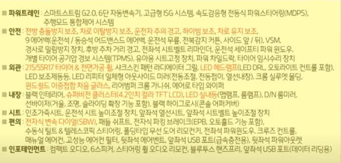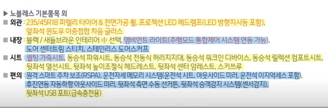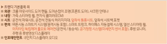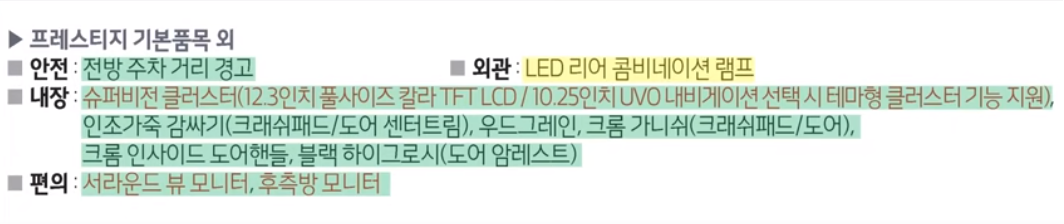 프레스티지 트림부터 기본품목에 뭐가 들어가는지 알려드리도록 하겠습니다.