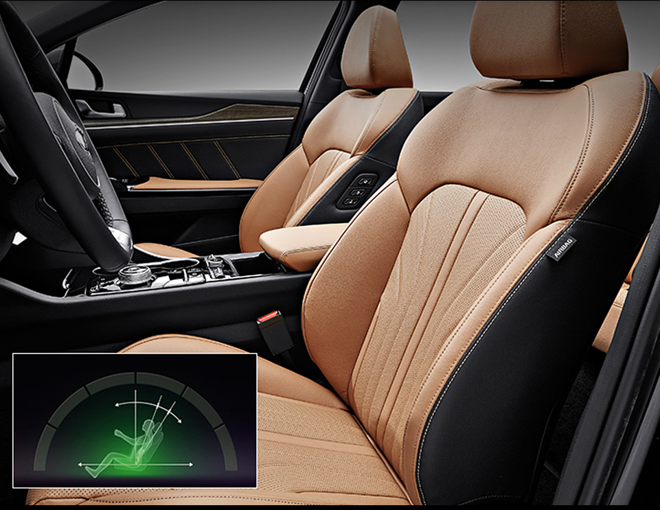 시그니처 트림만의 특별한 변화는 엠비언트 라이트, 도어 센터트림 스티치, 퀼팅 가죽시트, 메모리시트, 후진연동 자동하향 아웃사이트 미러(후진주차 시 사이드미러가 내려가는 기능)