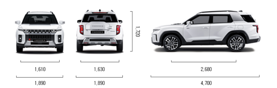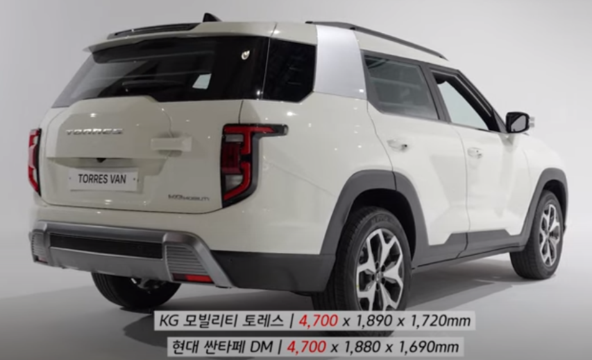 이제 바로 가격얘기를 해보겠습니다. 토레스의 최대 강점은 바로2600만 원대 가격에 있습니다. 토레스는 기존 모델에서 2열 좌석을 탈거해서 화물 적재 공간을 마련한 게 바로 토레스 밴 이랑 차량입니다. 기존 모델 같은 경우 2열을 폴딩 했을 때 최대 1,622리터였는데 토레스 밴 모델은 1,843리터입니다. 동급 모델에 비해서도 가장 넓은 공간을 가지고 있습니다. 토레스가 휠베이스로 따졌을 때 준중형급 SUV이지만 차체길이는 중형급차인 싼타페 DM과 동일한데 그렇기 때문에 광활한 트렁크 공간을 뽑지 않았을까 생각합니다.