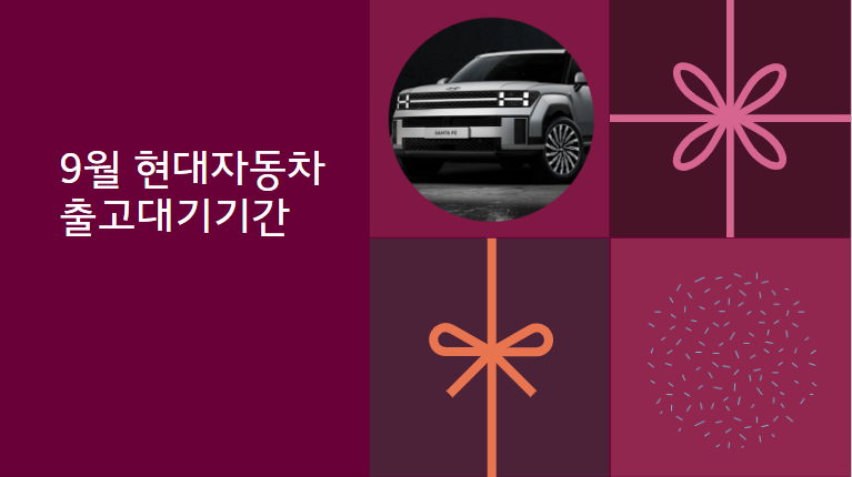 2023년 9월 기준 현대자동차 출고대기기간을 총정리해 봤습니다. 9월 구매 원하시는 분들은 참고하시길 바랍니다. 더불어 9월에 구매하시는 분들 혜택도 정리해 봤으니 구매혜택도 놓치지 마시길 바랍니다.